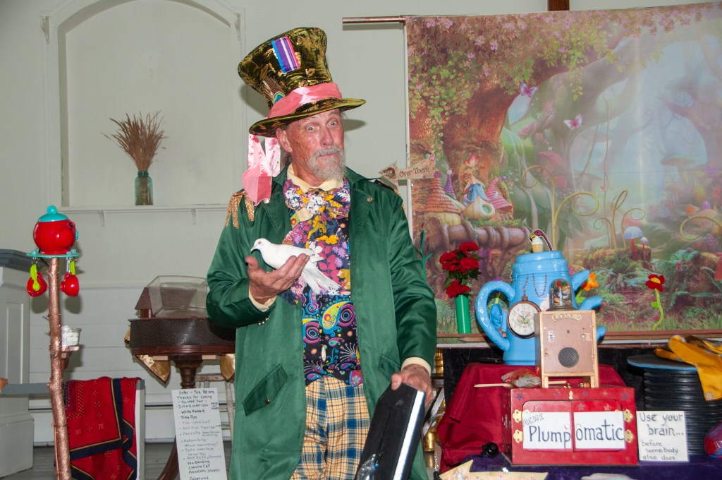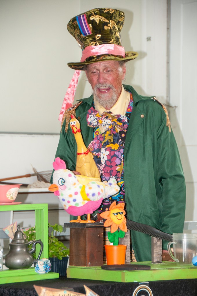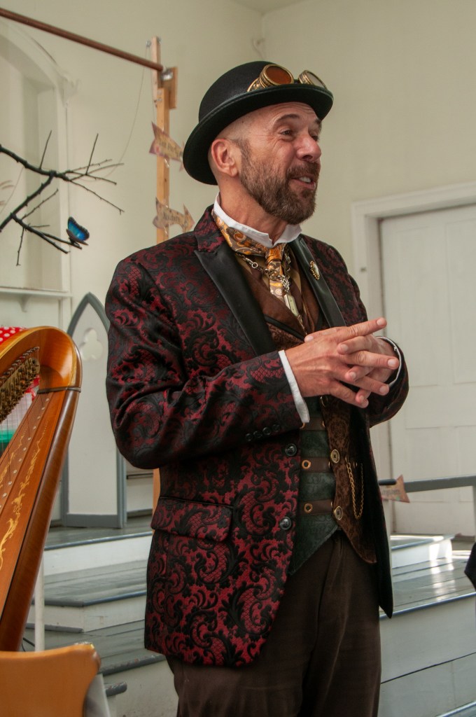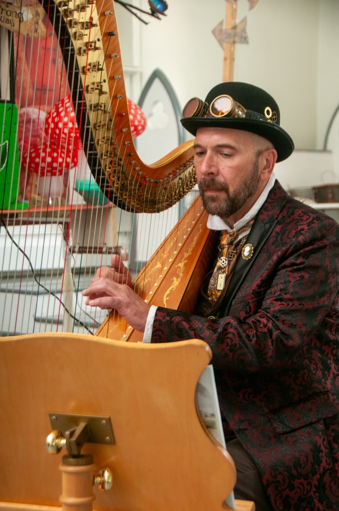 Hurkys Amazing Flea Circus, Strong Man, Parasol Dueling with Lady Alicia, Tea Dueling with Tea Tsar Miah, Steampunk Fashion Show, Bubble Show, Steampunk Xena Fire Show, Blazing Poppies Fire Show, and more!
